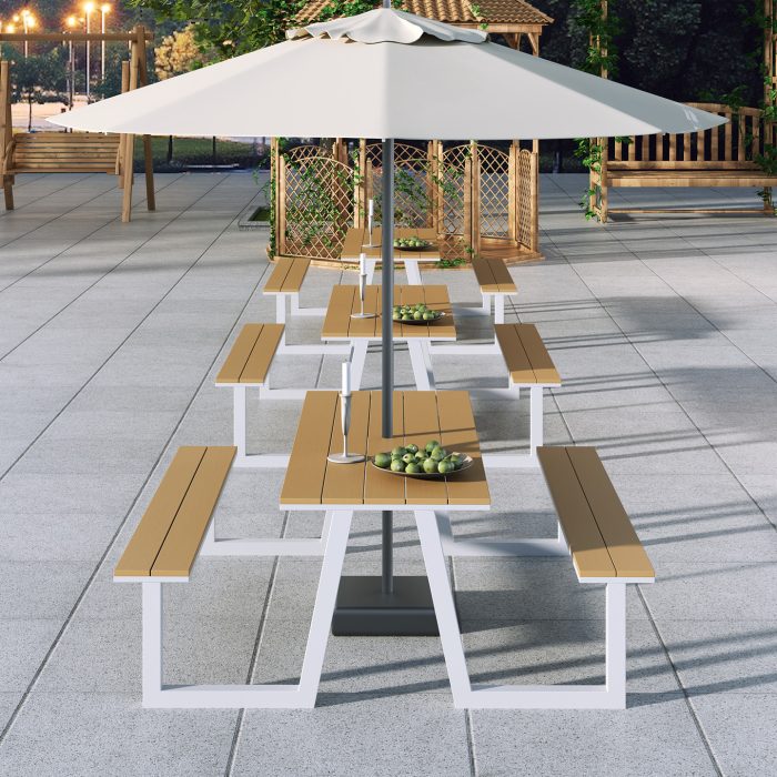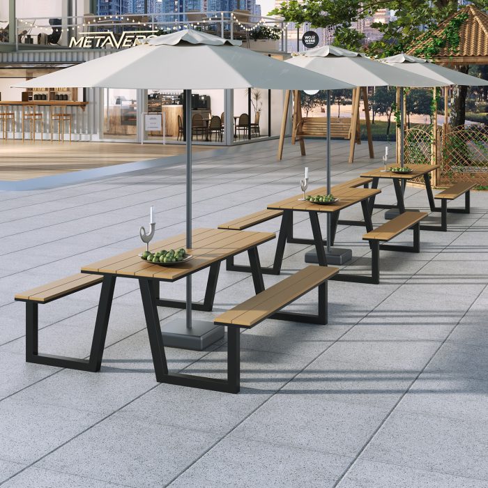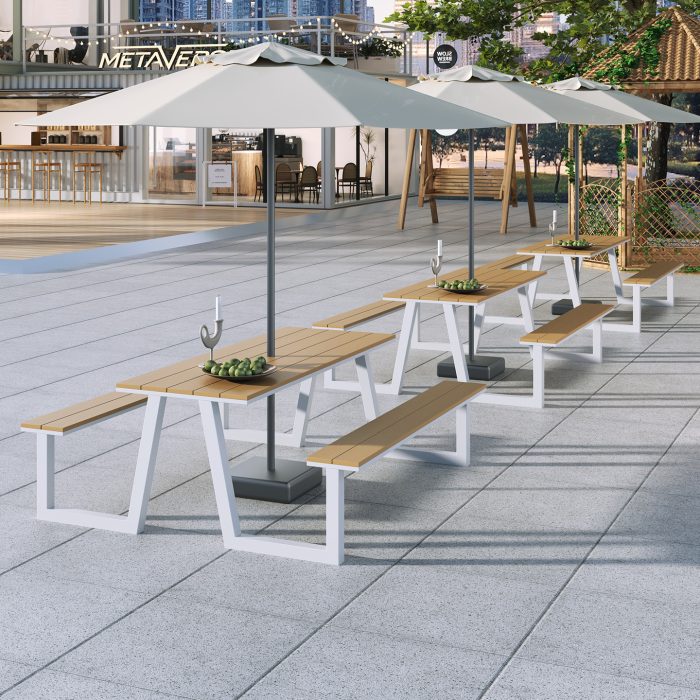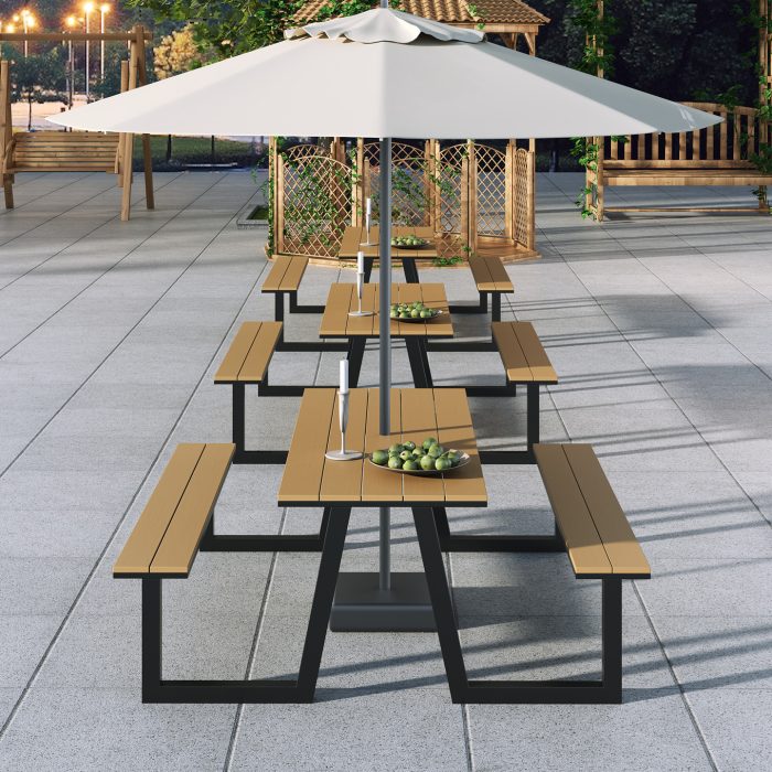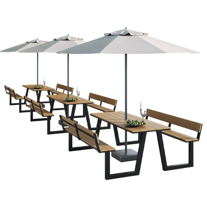 Outdoor patio table and chair set, commercial outdoor display, integrated dining table and chair, scenic area open-air square, umbrella-equipped leisure table and chair